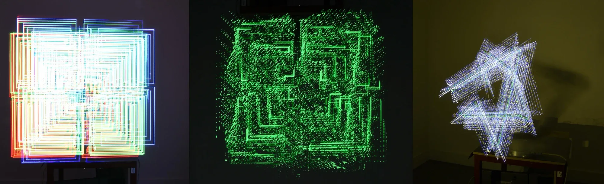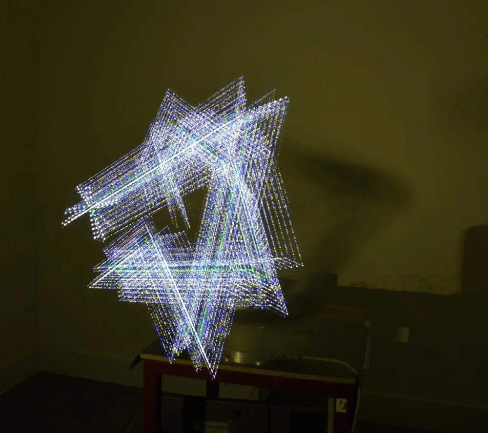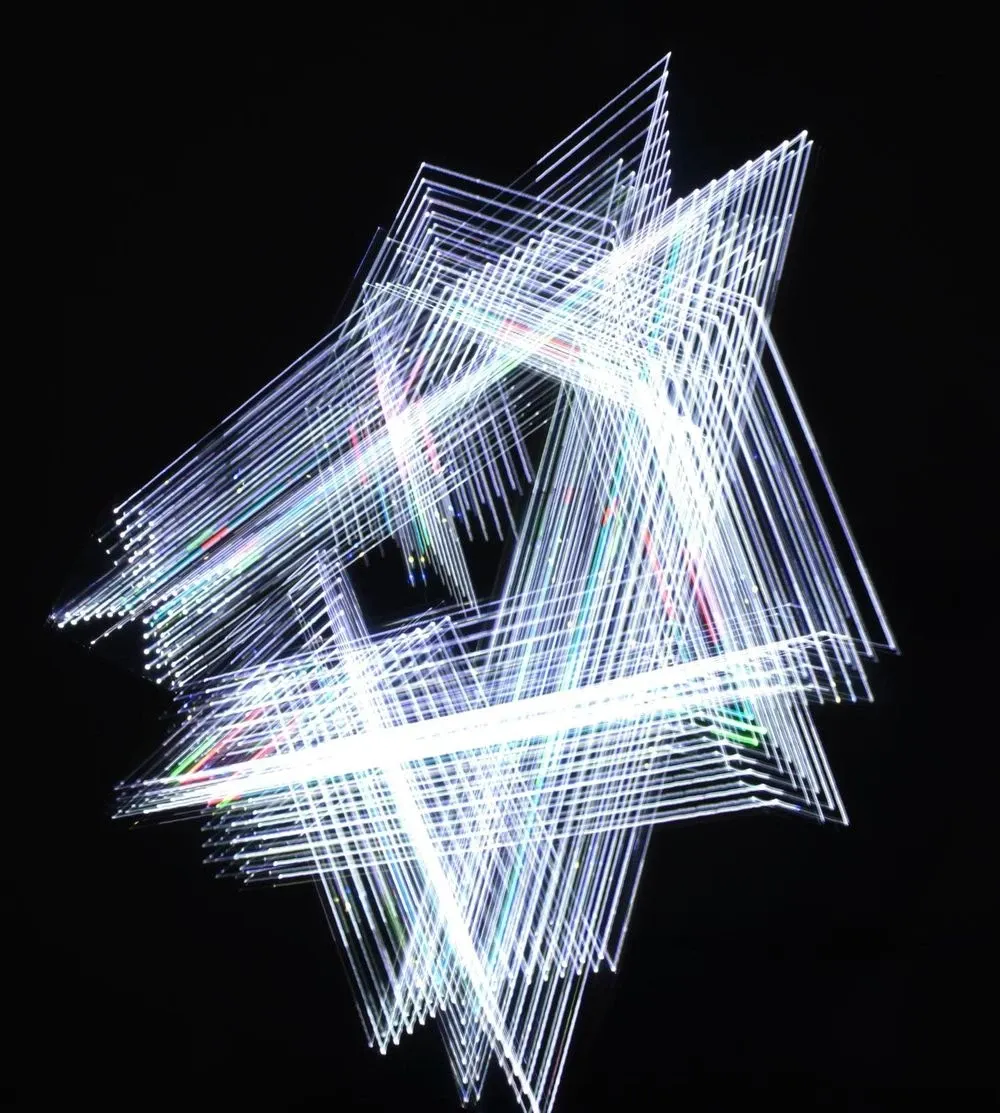 Reflective Aurora (2018) was the result of a workshop based exploration of the ephemeral, overlays of data, space and time. Expressed via light compositions coupled with kinetic choreographies.